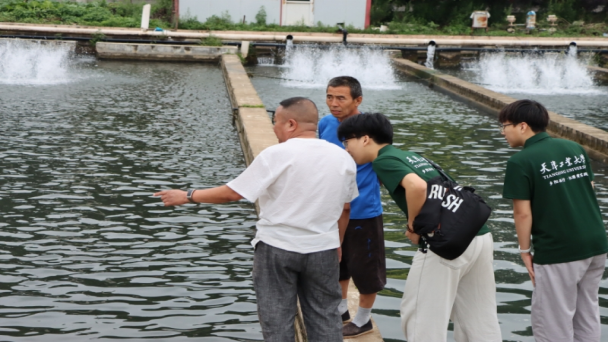 图为实践团参观下北泉村虹鳟鱼养殖基地